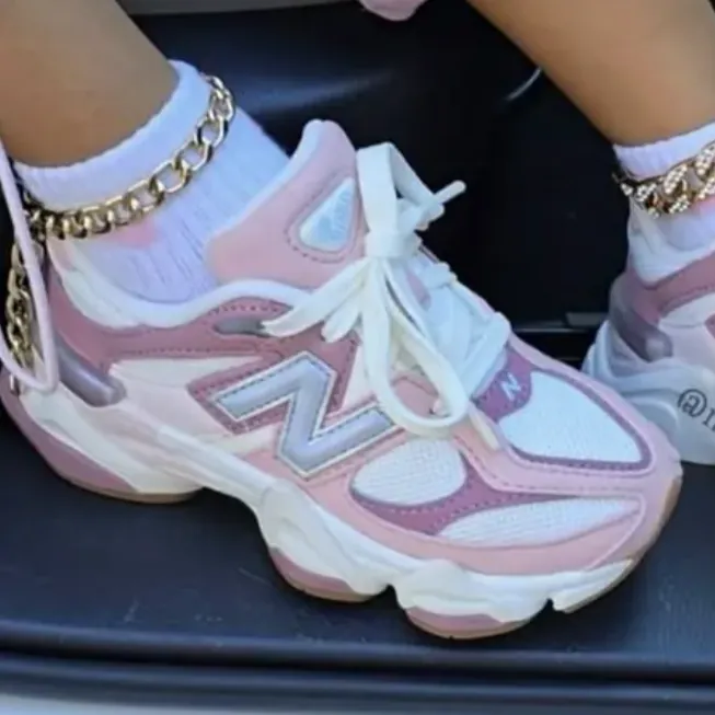 Experience comfort and style with the pink New Balance 9060 sneakers. Ideal for running or vacation, these shoes offer versatility and support for all-day wear.